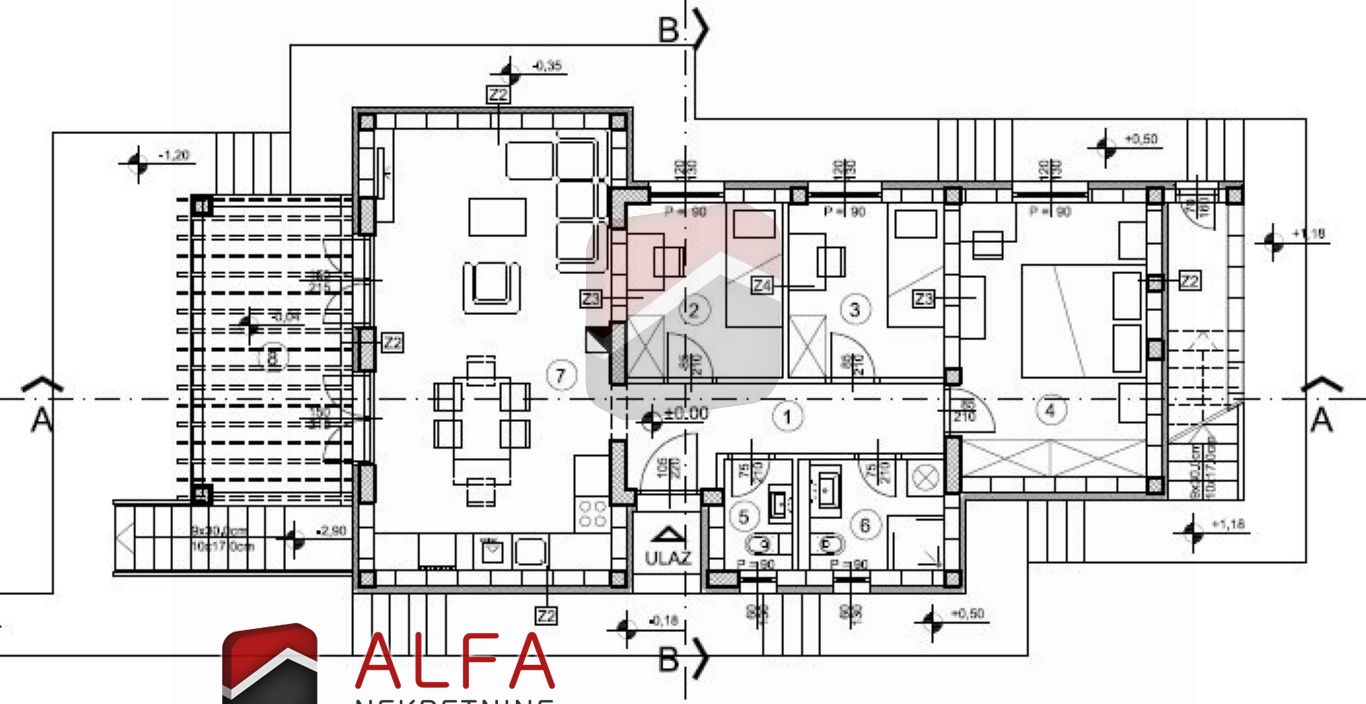 The land is for sale with a building permit that allows a construction of a detached family house, total size 152 m2. The planned house consists of a ground floor and first floor.