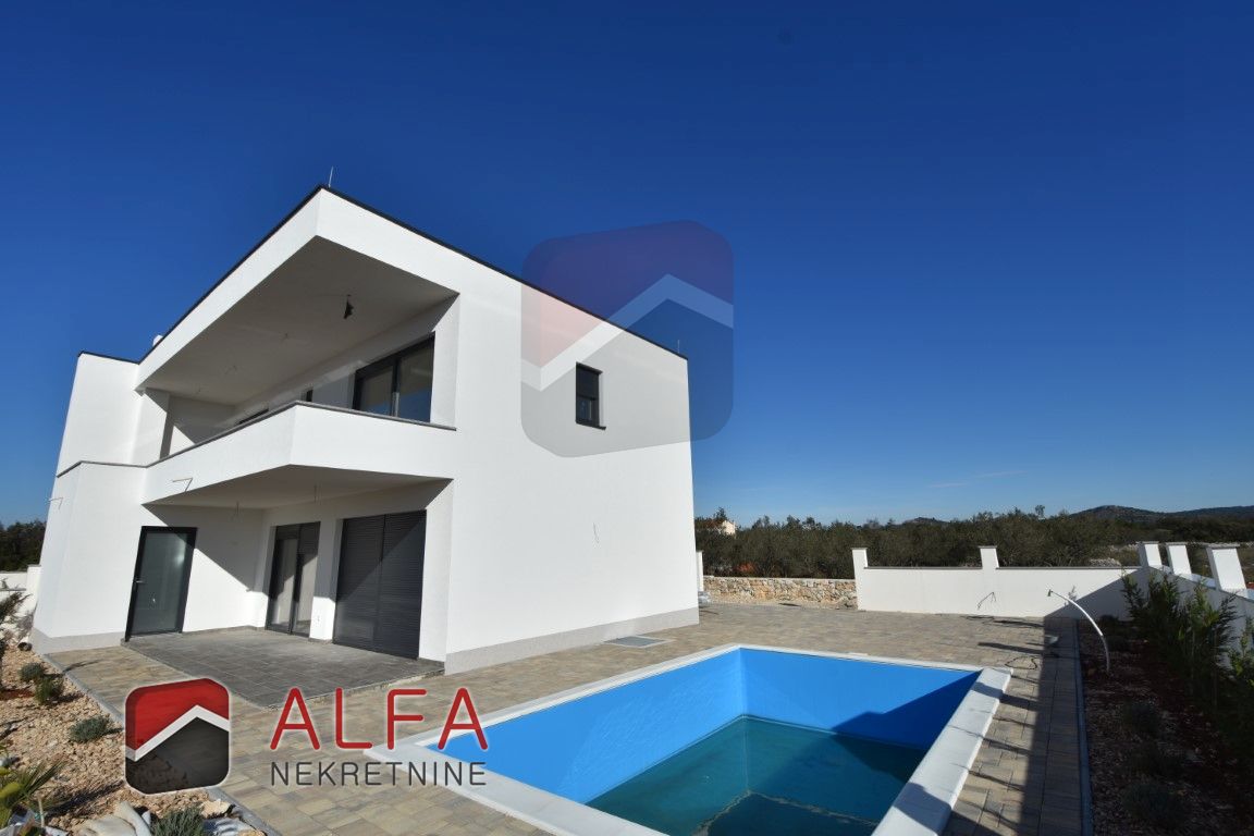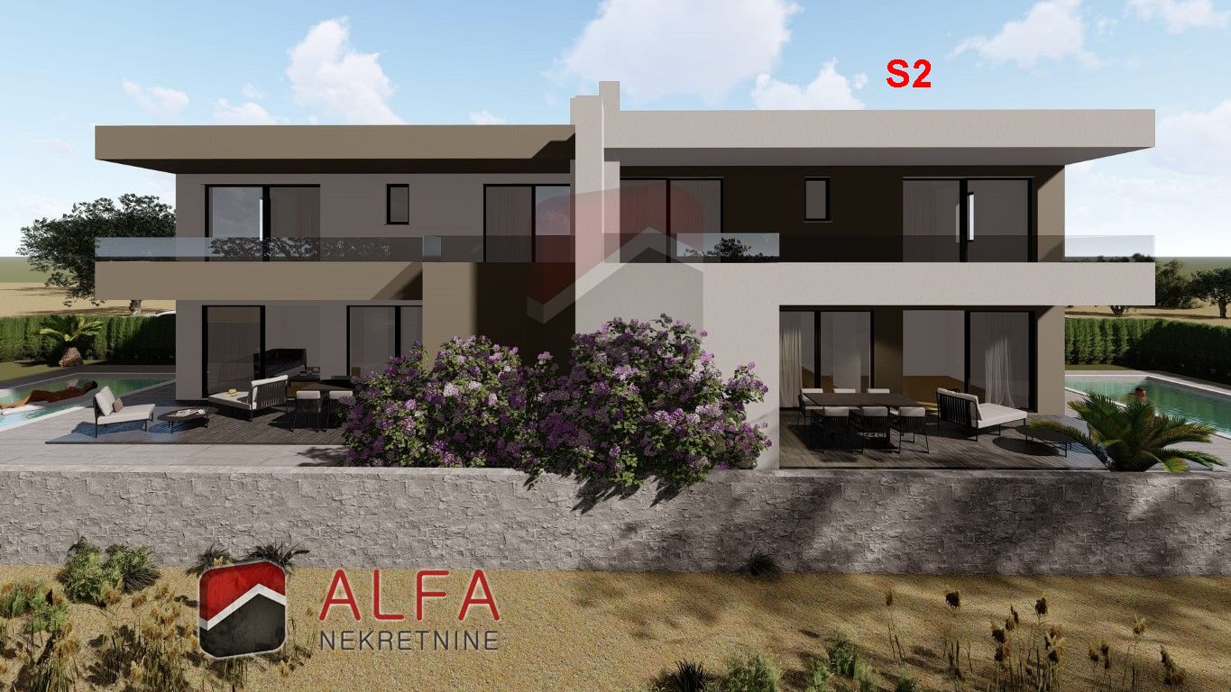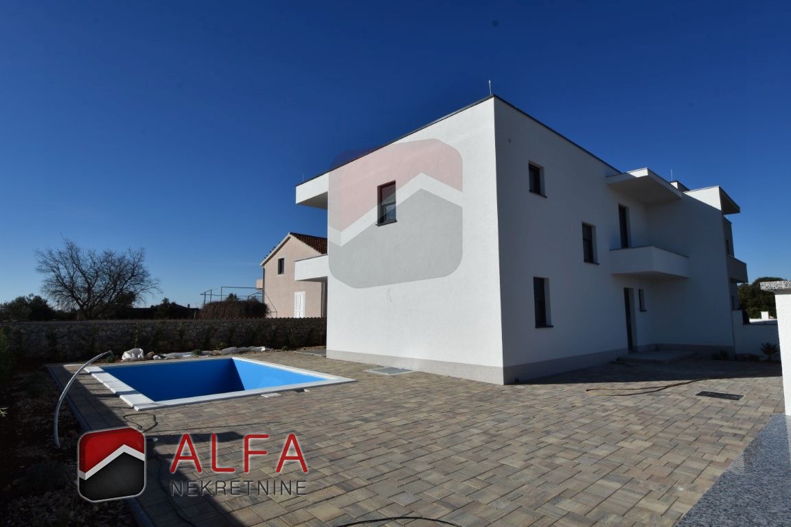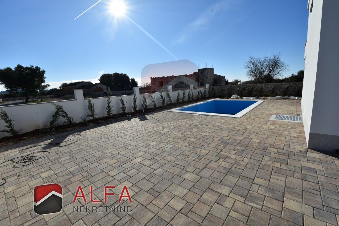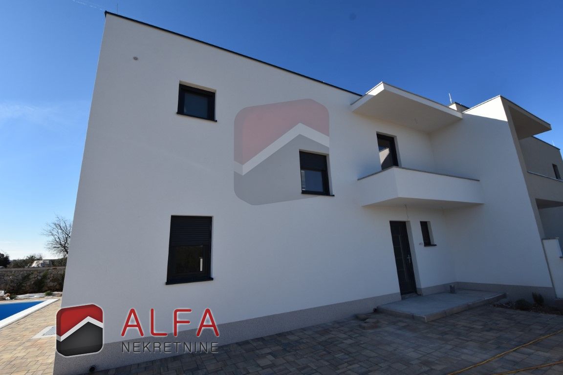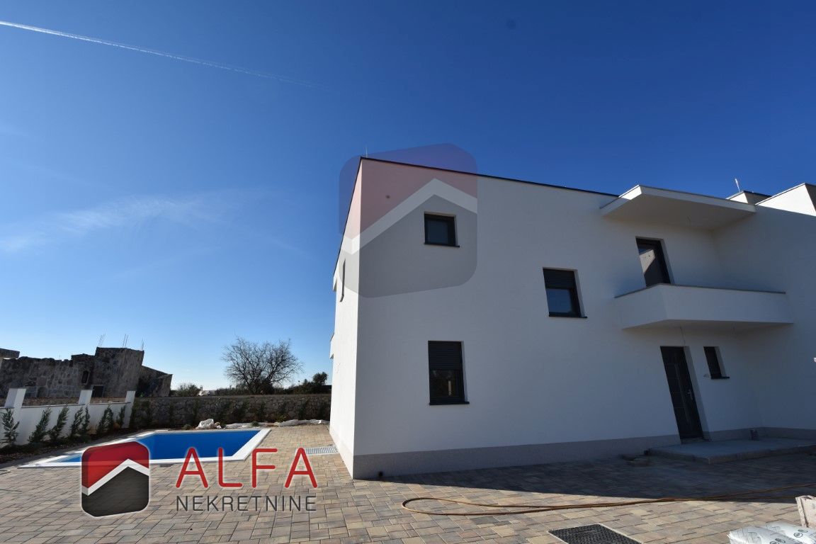 Croatia, Šibenik, Bogdanovići, near Jadrija, new modern semi-detached house with swimming pool is for sale. It is located in an extremely quiet location. It is 1.1 km from the nearest beach, and 4 km from Jadrija beach.