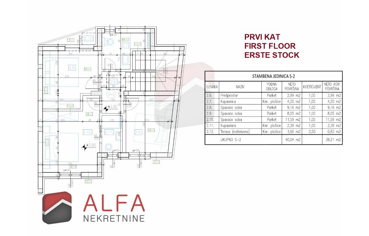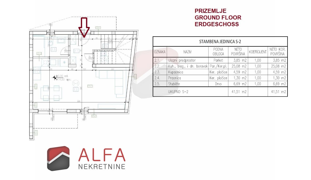 Residential unit S2 consists of a ground floor and a first floor and offers a total of three bedrooms and two bathrooms across both levels.