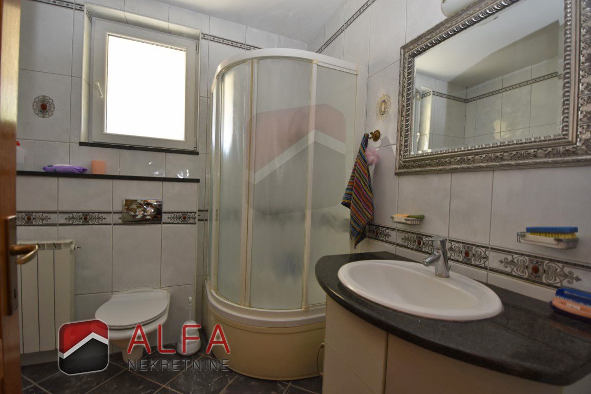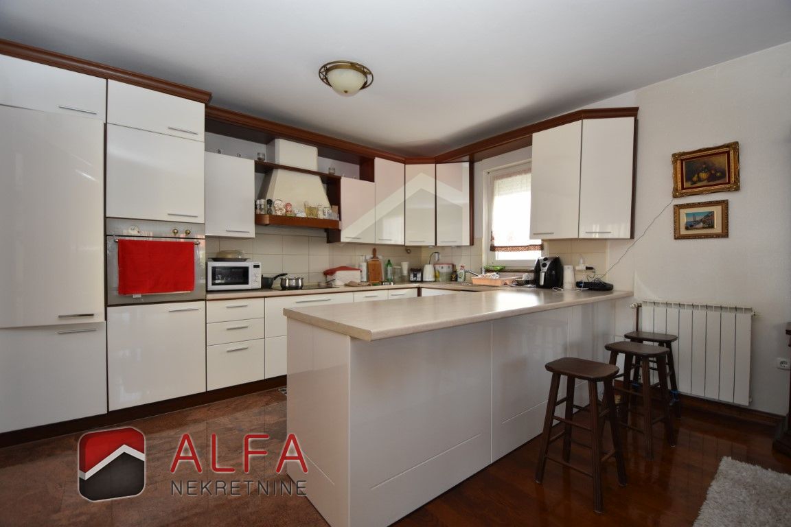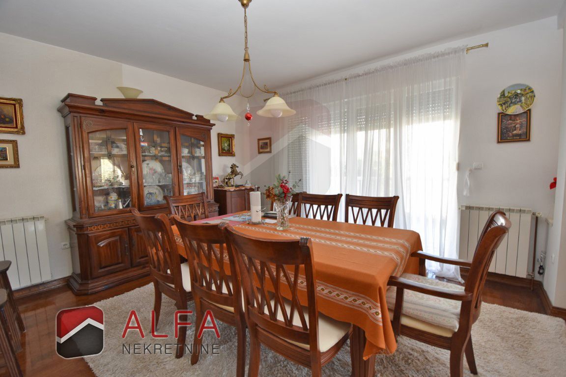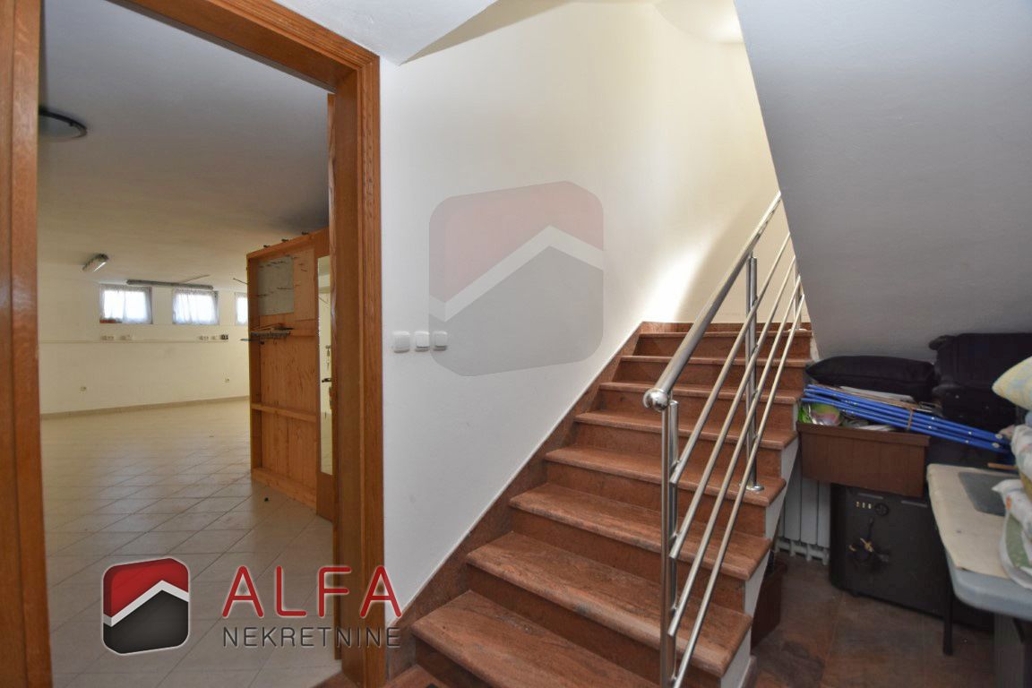 In the basement there is a smaller room with a central heating boiler room, and one large room that can easily be adapted to different needs – from storage to work space. Also, the basement includes a spacious garage, and all rooms are connected by internal stairs to the rest of the house. Along with the garage, the yard offers additional parking space for three more cars.