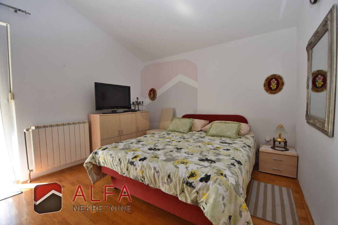 Croatia, Vodice, for sale is fully furnished detached house with three apartments, large basement, garage and a beautifully landscaped garden. The house is 1000 meters from the sea and is located in a quiet location, ideal for family life or tourist rental.
