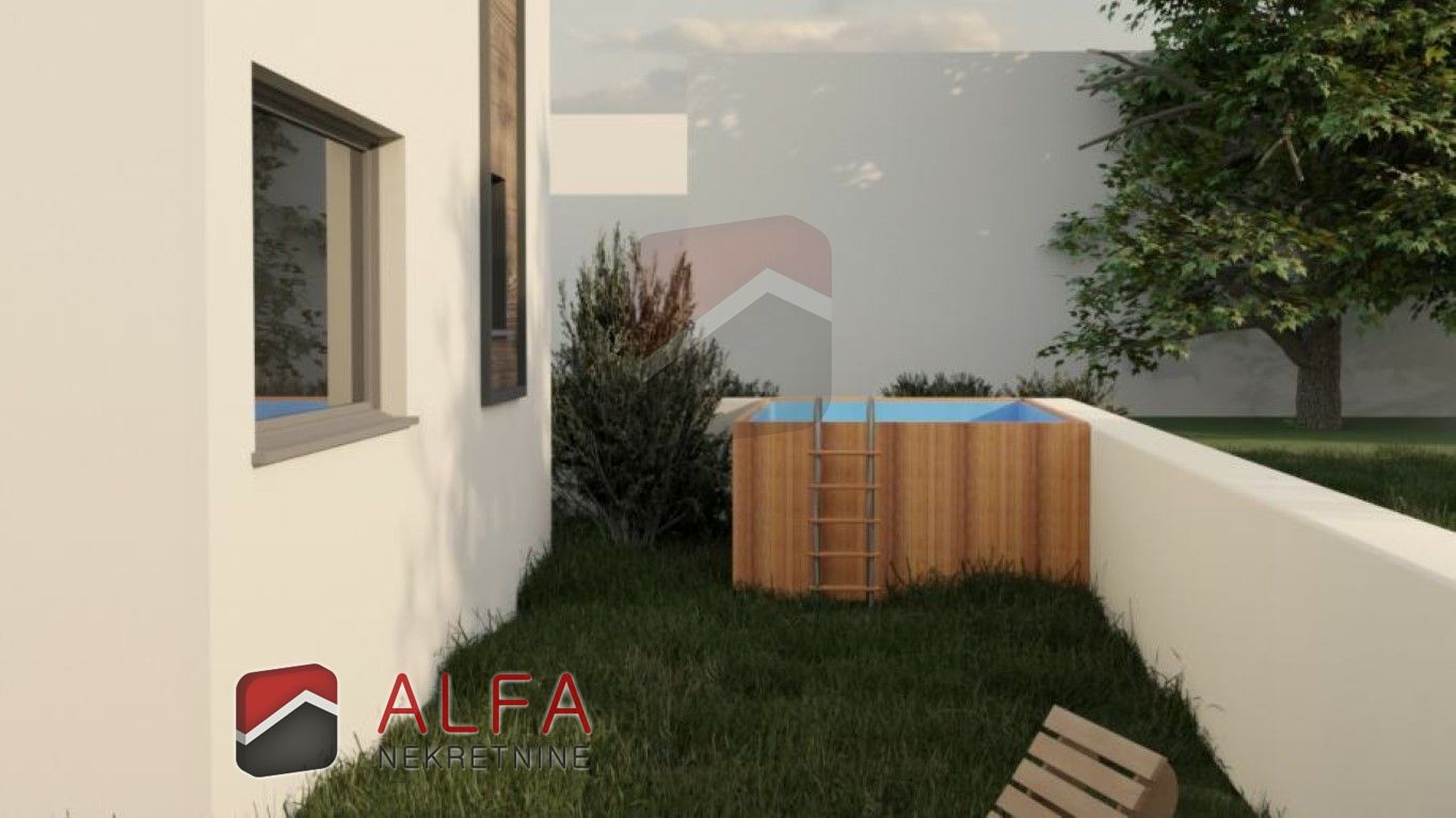 On the ground floor, the house has an entrance hall, bathroom, kitchen with connected dining area and living room with an exit to the terrace. With glass walls on the ground floor, the entire space is extremely bright. There is a garden in front of the terrace. Internal stairs lead to the first floor, where is a hallway, bathroom and three bedrooms, one of which is larger, while the other two are smaller. From the first floor it will be possible to reach the beautiful spacious roof terrace.