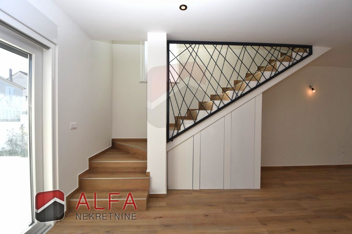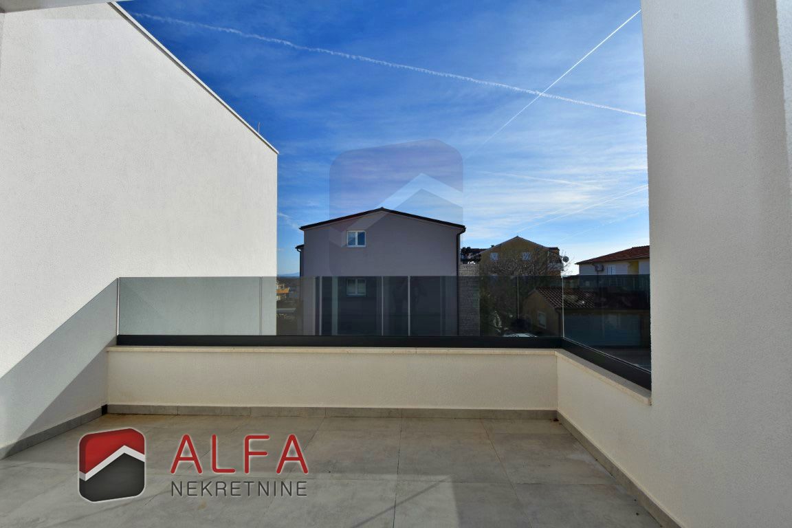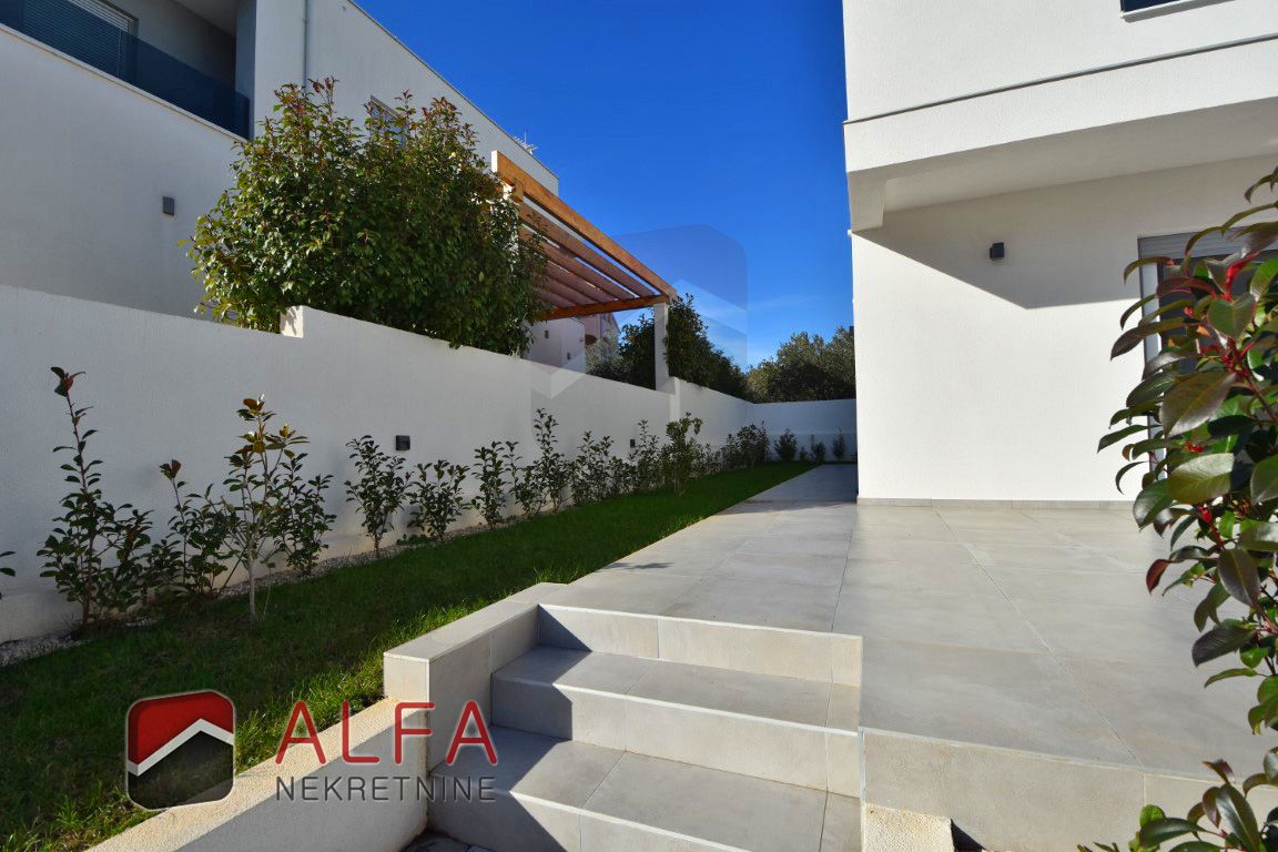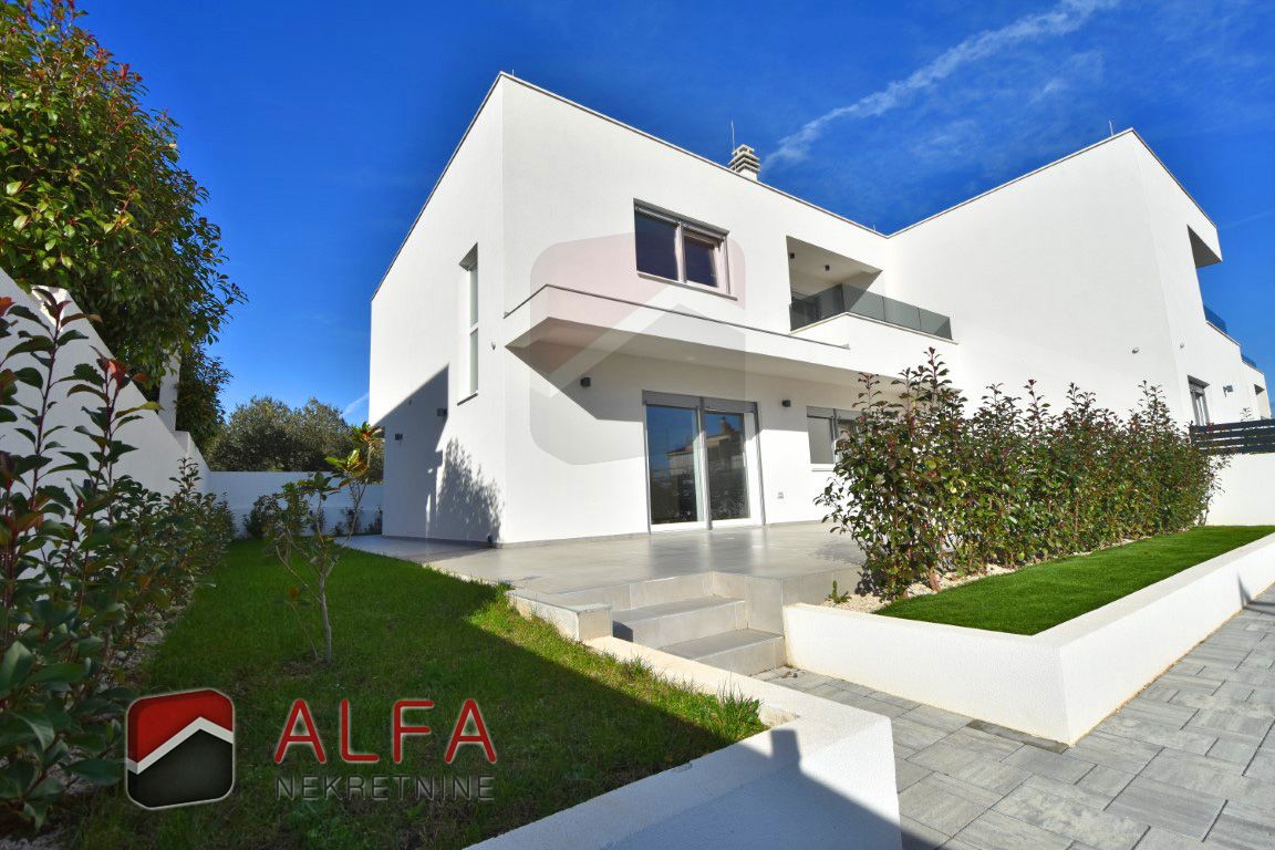 Croatia, Vodice, a newly built semi-detached family house of modern design is for sale, situated in a quiet location 1,000 metres from the sea.
