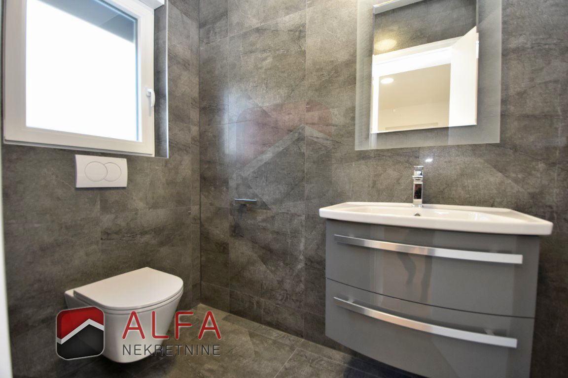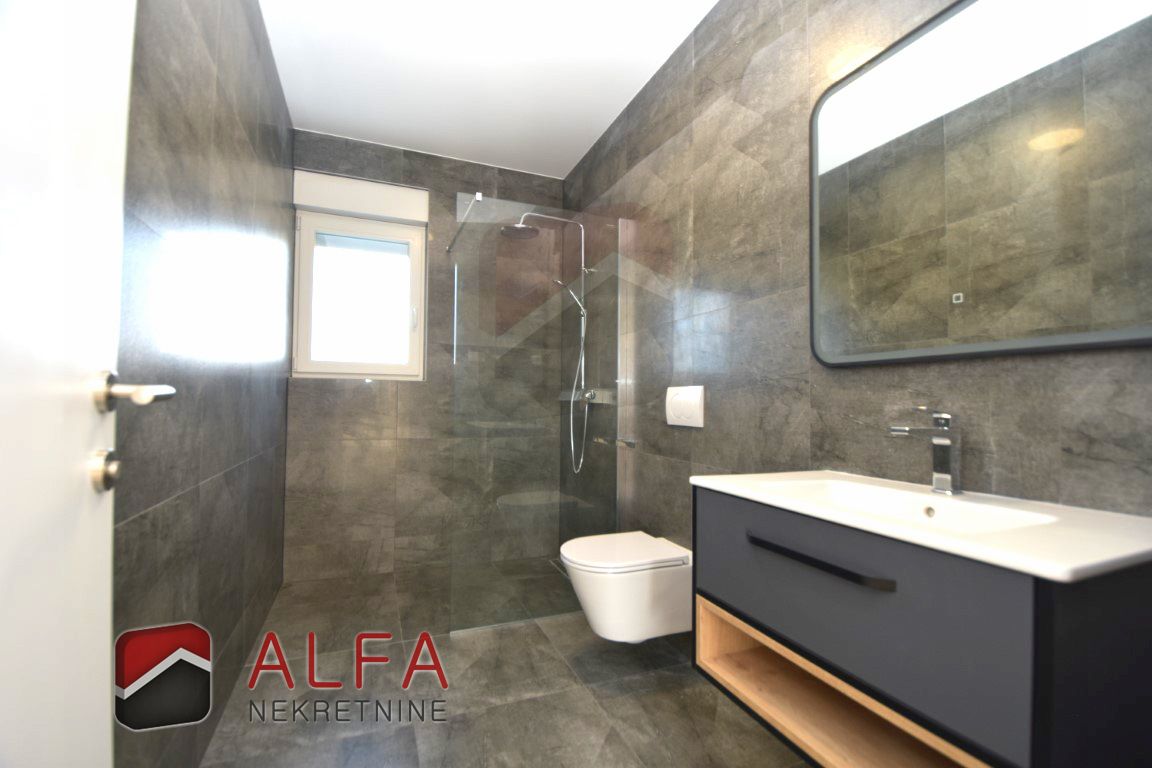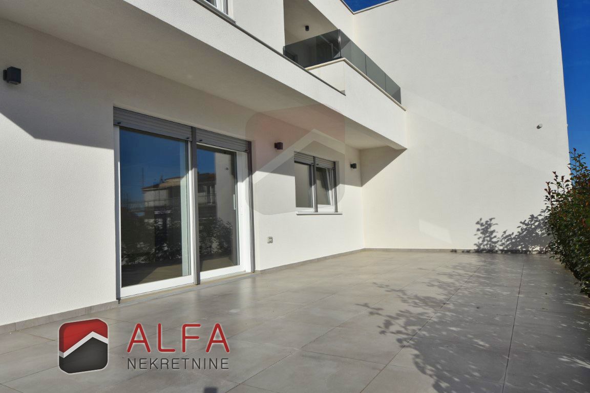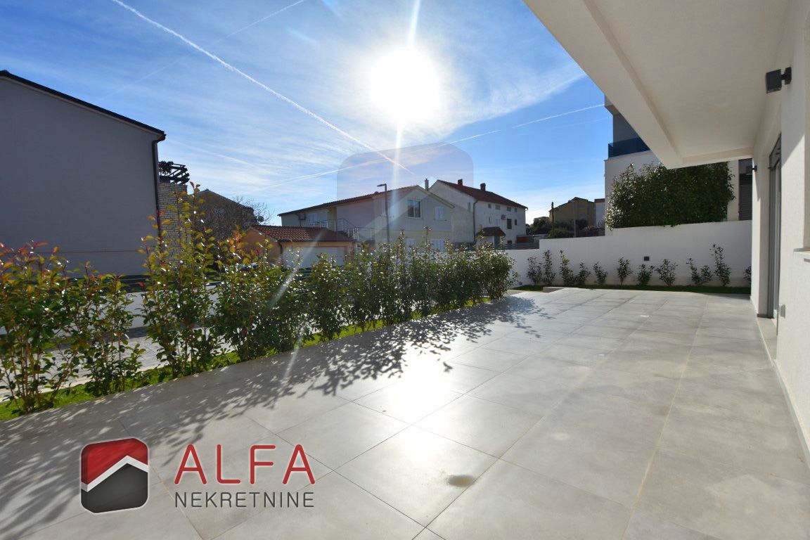Croatia, Vodice, a newly built semi-detached family house of modern design is for sale, situated in a quiet location 1,000 metres from the sea.