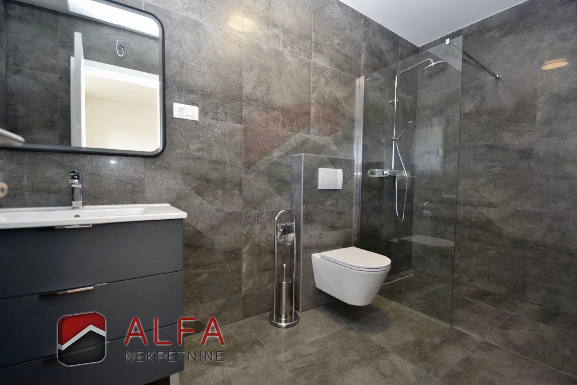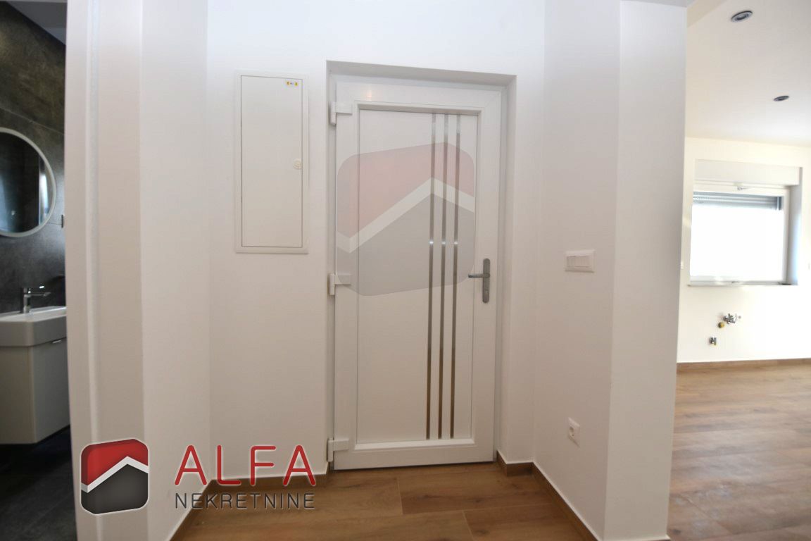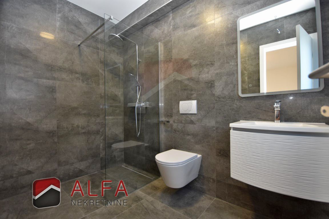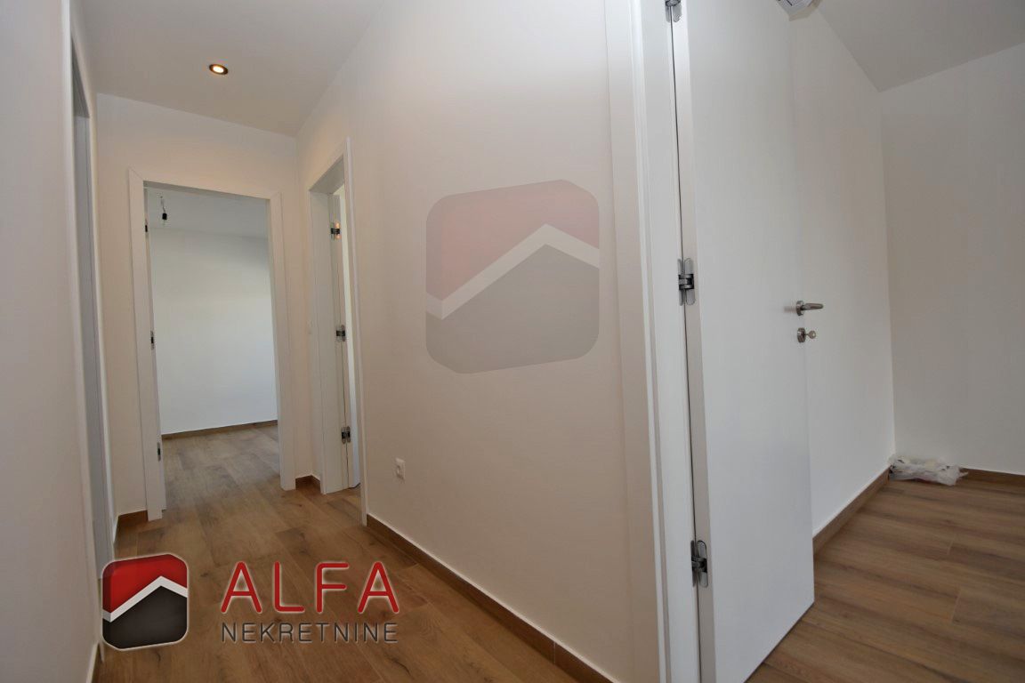 High-quality construction features include: electric underfloor heating in the living room and bathrooms, PVC windows with aluminium electric shutters, burglar-resistant entrance door, and air conditioning units in all rooms.