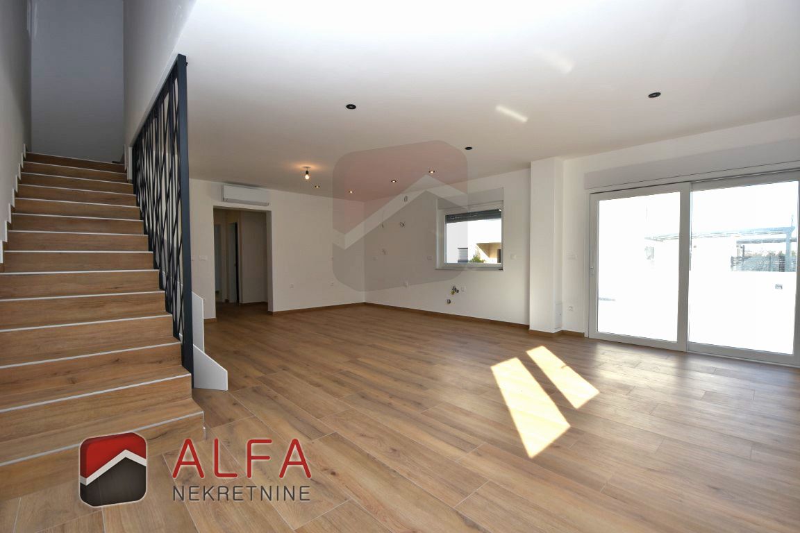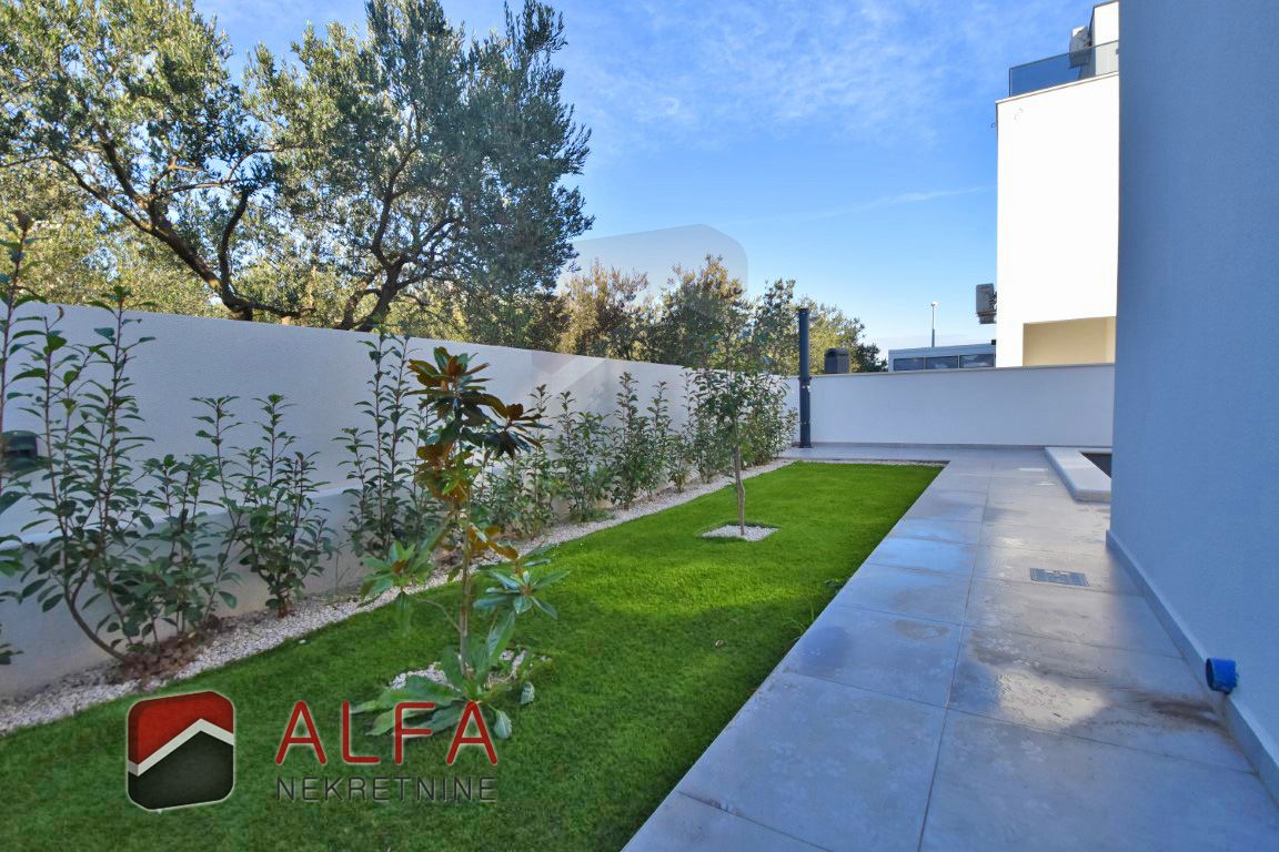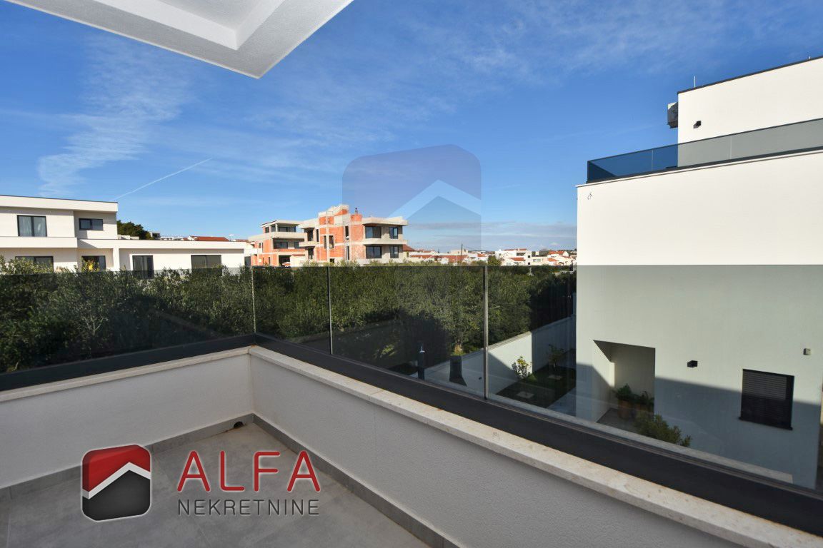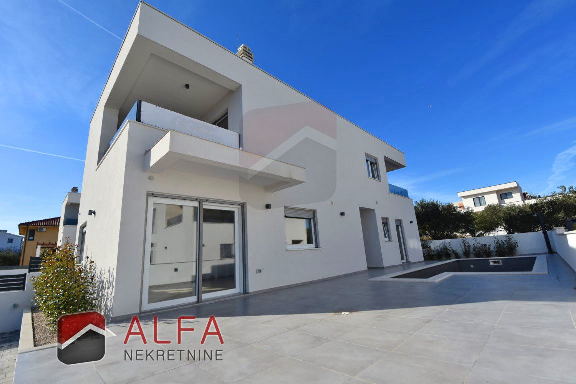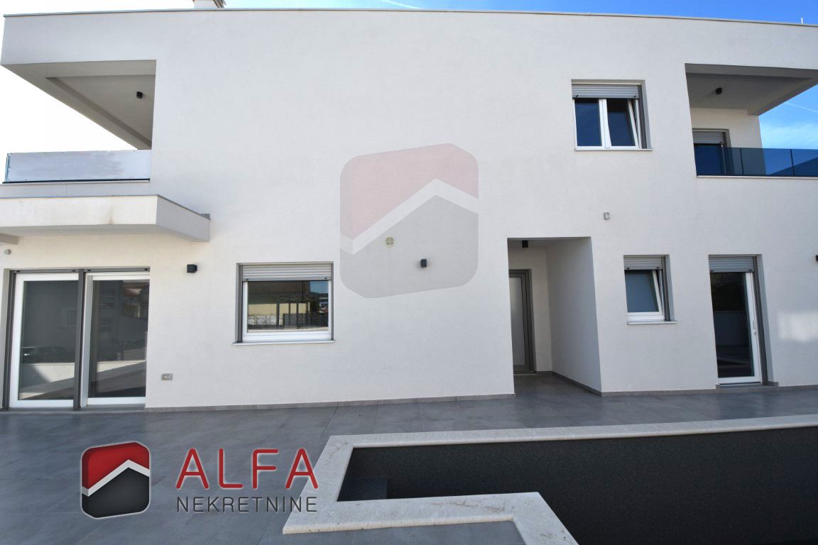 Croatia, Vodice – new built semi-detached family house with a swimming pool is for sale, located in a quiet area. The house features modern architecture and is situated approximately 1,000 metres from the sea.