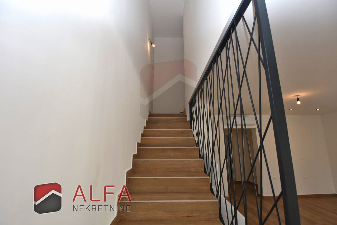 The house is completed and registered as a two-storey residential unit (S2), with a total usable area of 166 m² (calculated with coefficients). It offers 122.23 m² of internal living space, 59 m² of covered and uncovered terraces, and a 133.57 m² courtyard surrounding the house, which includes a swimming pool, garden area, and parking space.
