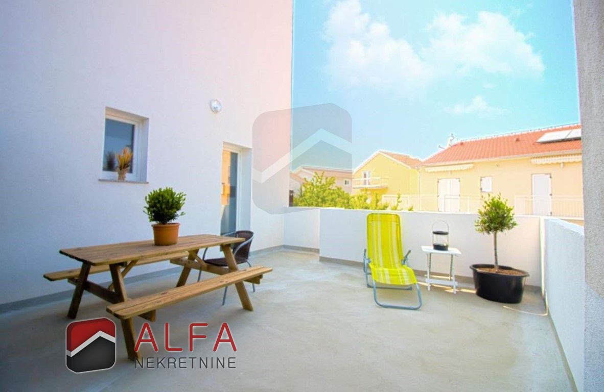 There is a spacious garage, two apartments and separated storage room on the ground floor. First apartment consists of three bedrooms, bathroom, kitchen with dining and living area and large terrace. Second apartment has two bedrooms, bathroom, kitchen with dining room and living room and terrace.