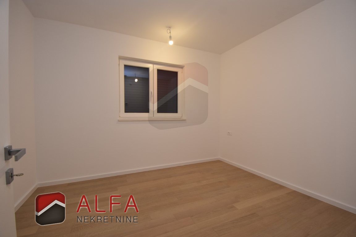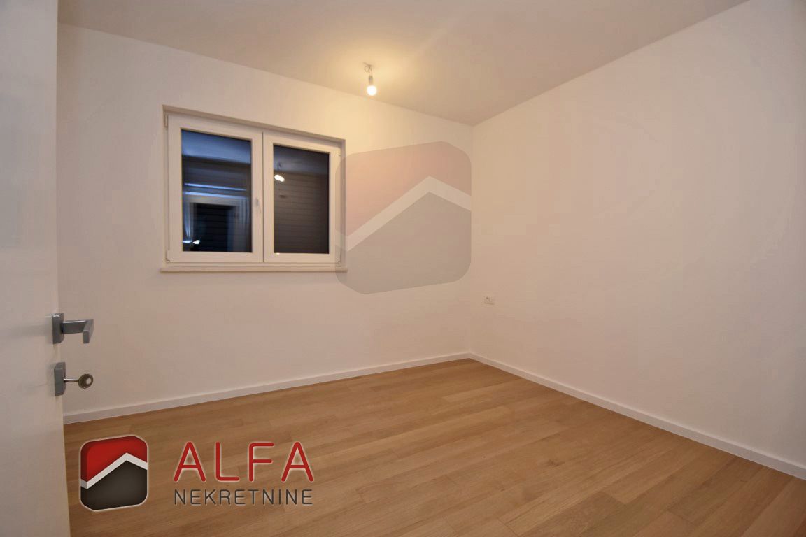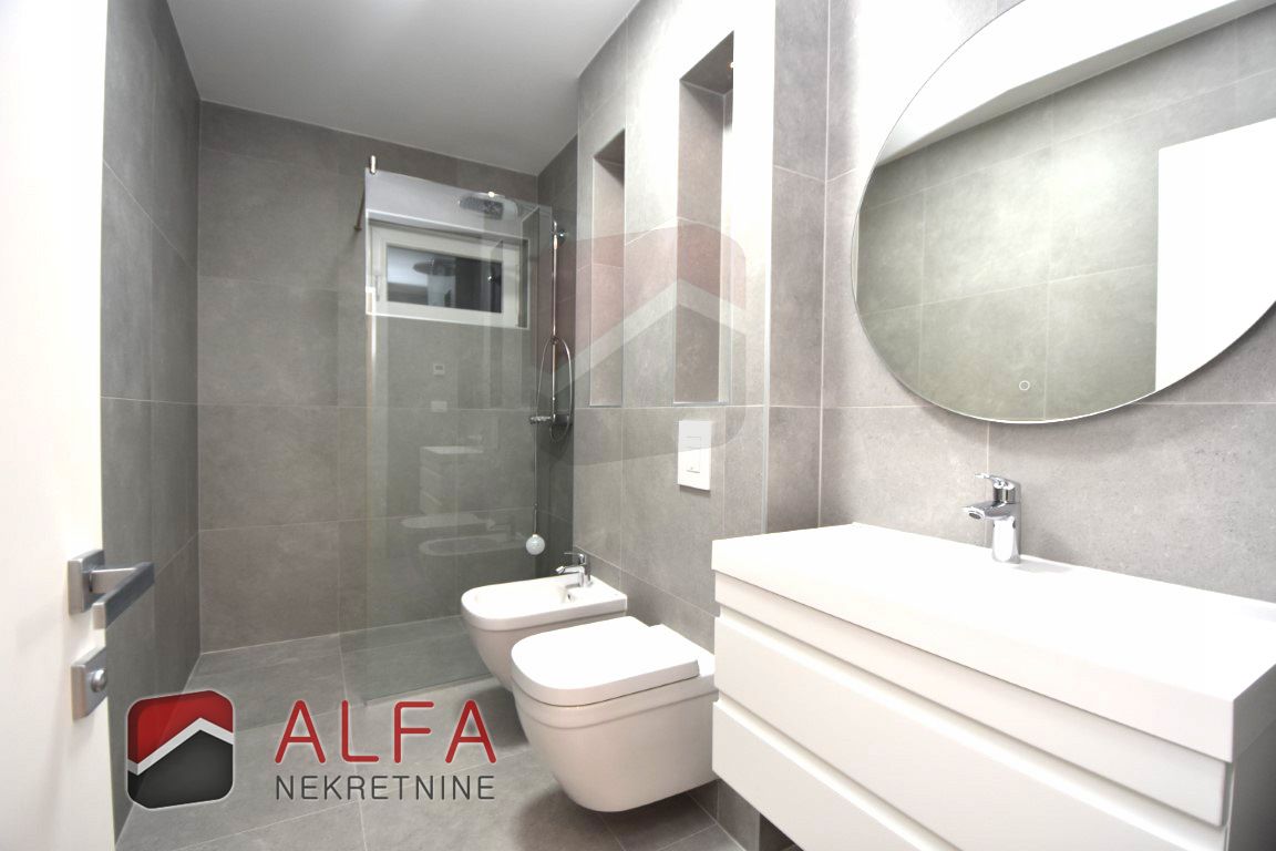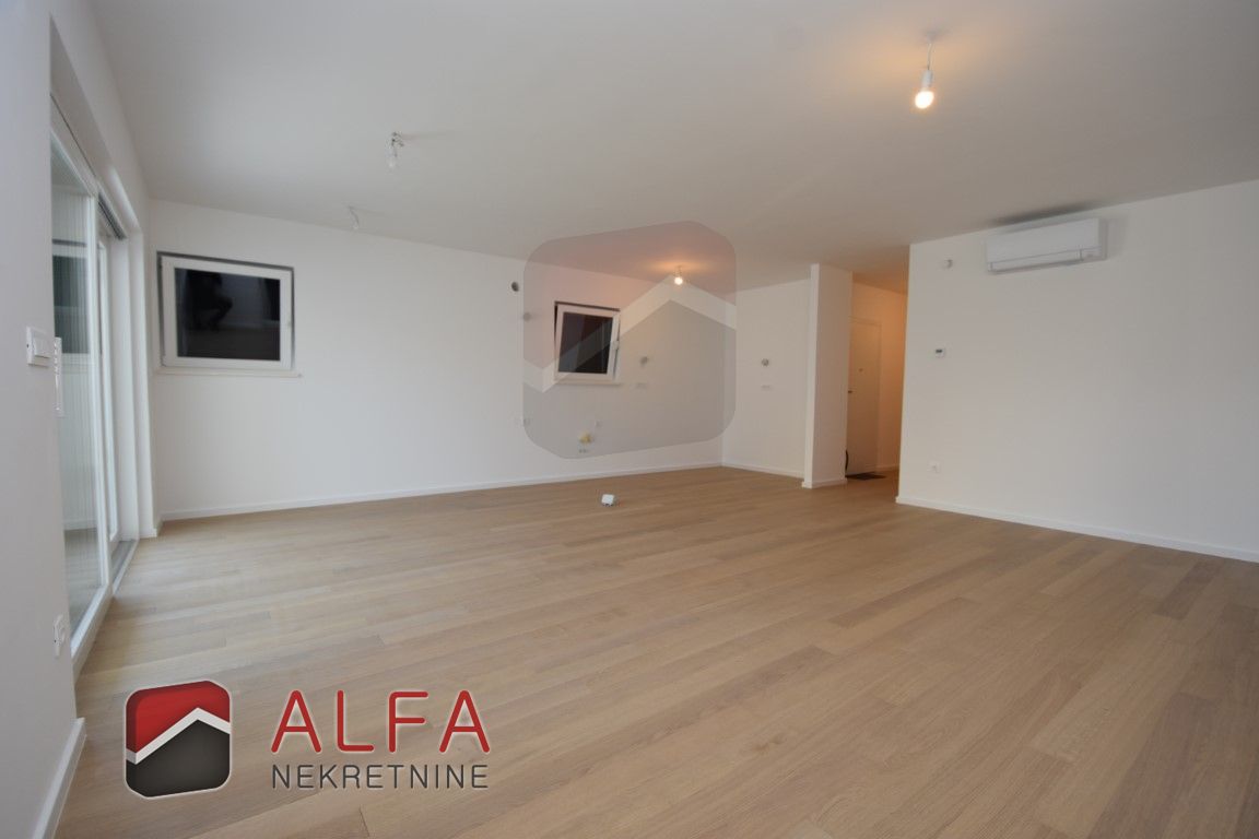 The apartment consists of an entrance hall, three bedrooms, two bathrooms, separate toilet, kitchen with dining and living area with access to large beautiful terrace. Next to the terrace is its own part of the yard.