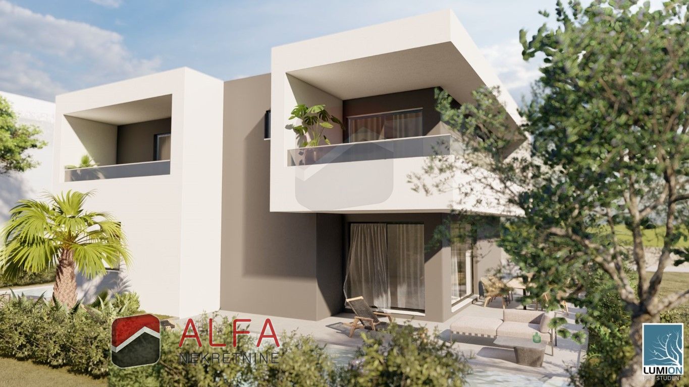 The total area of the apartment is 126 m2. The apartment is located in a new urban villa of modern architecture, which will have a total of three apartments. This apartment consists of a ground floor and a first floor which are connected by internal stairs, and own part of the yard next to the apartment and behind the apartment where three cars can be parked.