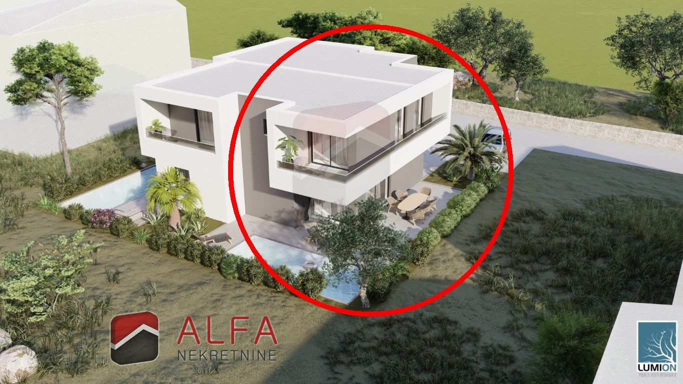 Croatia, Vodice, two-level apartment for sale in a new detached villa, in a good and quiet location. It is 750 m away from the sea. The facility is under construction and the expected completion date is the summer of 2022.