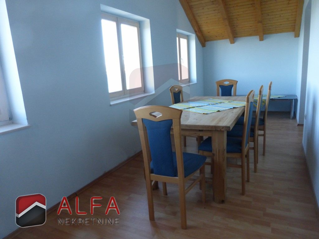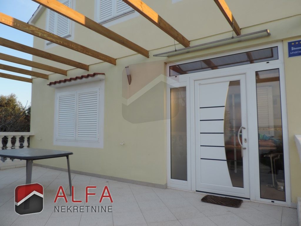 Svaka etaža kuće sadržava jedan stan. U prizemlju je komforan stan sa jednom spavaćom sobom, kupaonicom, kuhinjom, blagovaonicom i dnevnim boravkom, terasom stražnjom natkrivenom i terasom prednjom sa izlazom u dvorište i predivnim pogledom na more. Na prvi kat se dolazi stražnjim otvorenim stepeništem. Na katu je stan sa dvije spavaće sobe, kupaonicom, kuhinjom, dnevnim boravkom sa blagovaonicom, te stražnjom terasom sa koje se pruža lijepi pogled na more. Iza kuće kod stepenica su dva manja skladišna prostora, dok je ispred kuće pored terase, lijepi vanjski roštilj za ljetna druženja na otvorenom.
