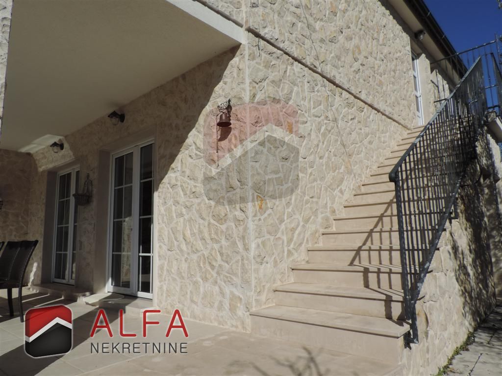 Kuća ima manji podrum, prizemlje i kat. Podrum je površine 18 m2. Prizemlje se sastoji od dvije spavaće sobe, kupaonice, kuhinje sa blagovaonicom i dnevnim boravkom sa kaminom, te lijepe velike terase. Kat je odvojen vanjskim stepenicama, a on sadržava 3 spavaće sobe, kupaonicu, kuhinju sa dnevnim boravkom i veliku terasu. Dio dvorišta oko kuće je popločan, na kojem je i zidani roštilj, dok je drugi dio uređen ukrasnim mediteranskim biljem. Moguće je u dvorištu izgraditi manji bazen.