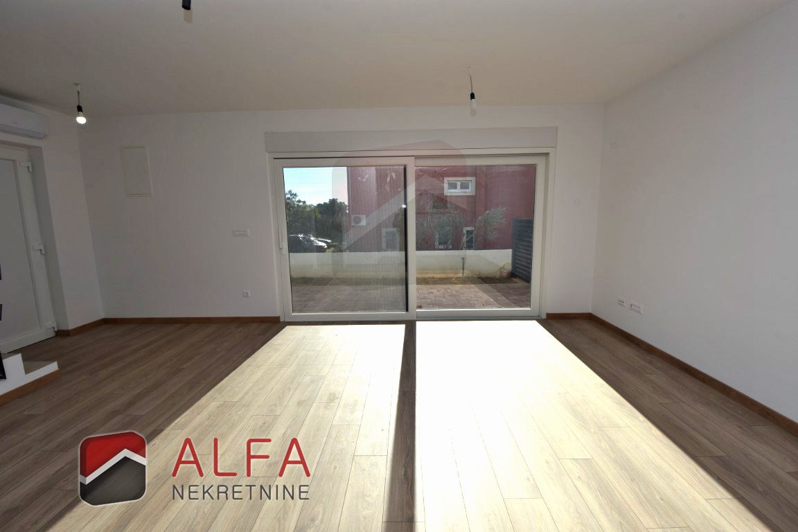 Vodice, prodaje se dvoetažan stan na kraju nove moderne kuće u nizu, udaljene 200 metara od mora.