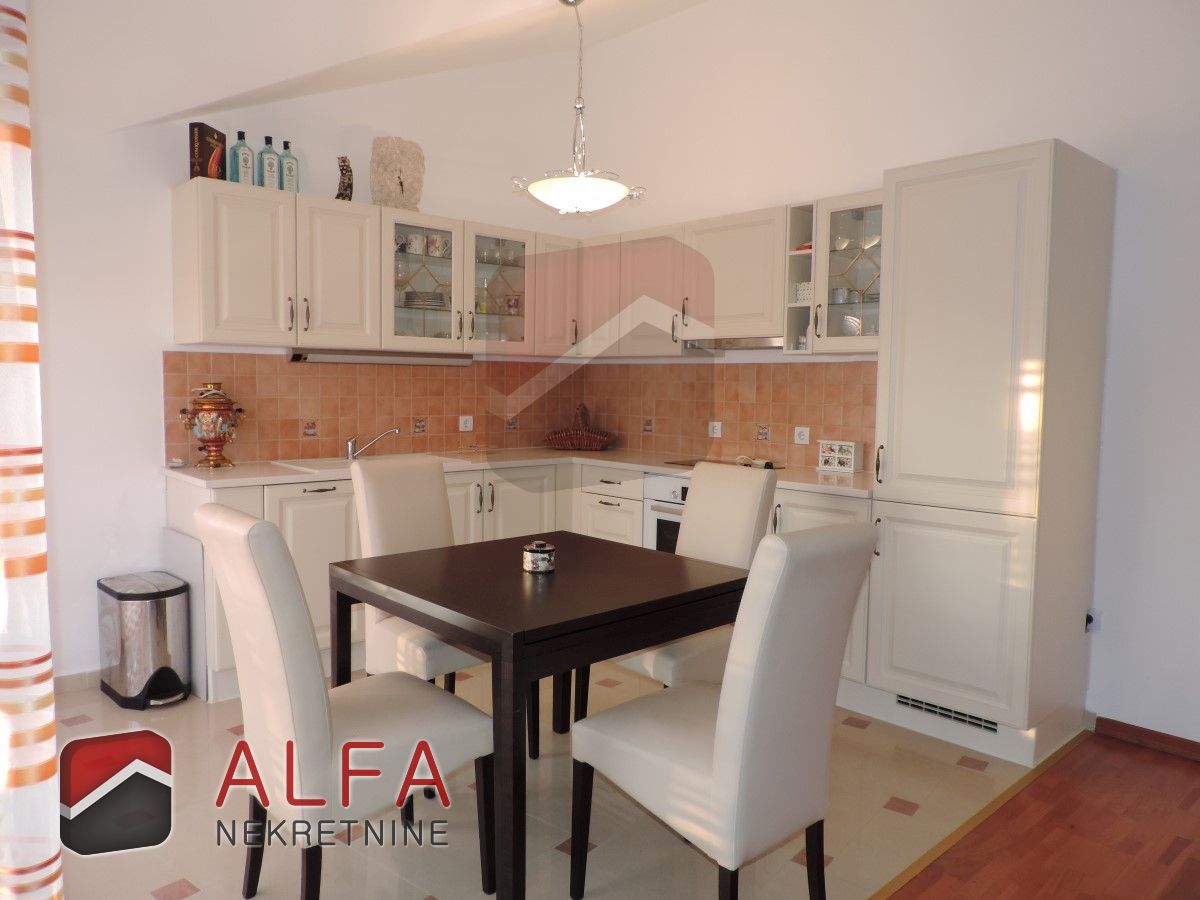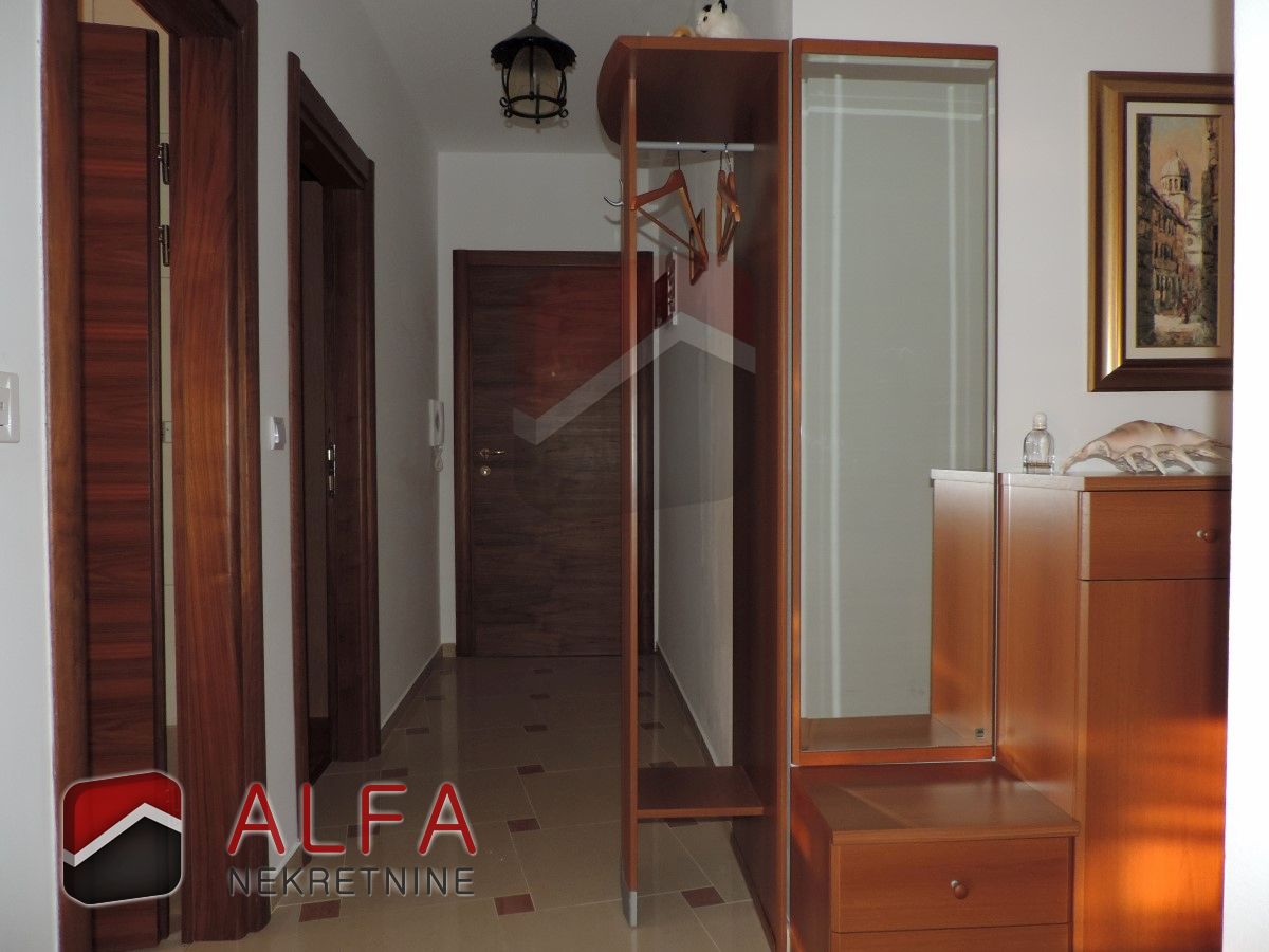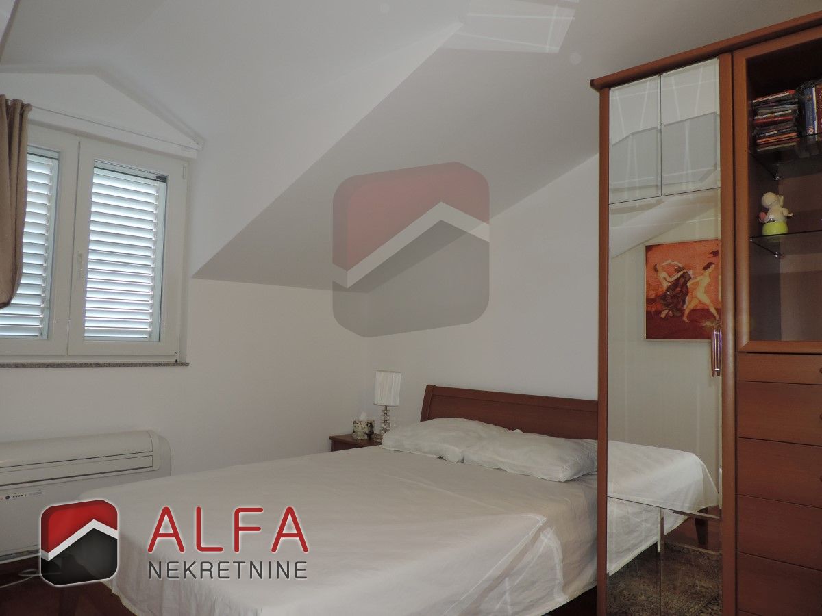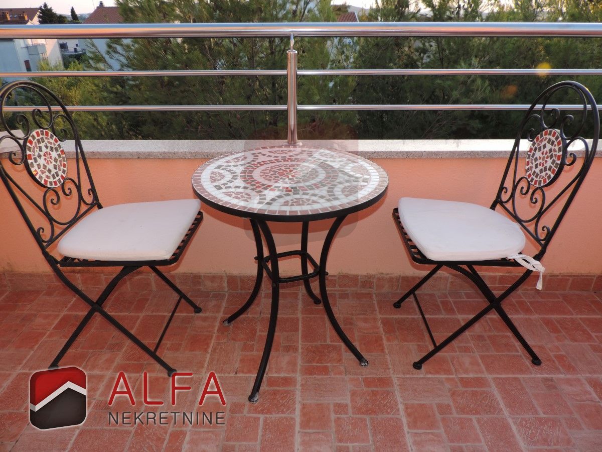 PRODANO … Vodice, prodaje se dvosoban, komforan stan udaljen 350m od mora. Stan ima ukupnu površinu 78,17 m2 i nalazi se na drugom katu (potkrovlju). Sastoji se od hodnika, dvije kupaonice, dvije spavaće sobe, kuhinje sa blagovaonicom i velikim dnevnim boravkom, te dva balkona sa pogledom na more. Stanu pripada jedno parkirno mjesto.