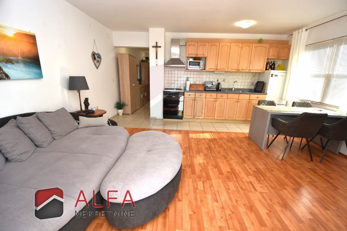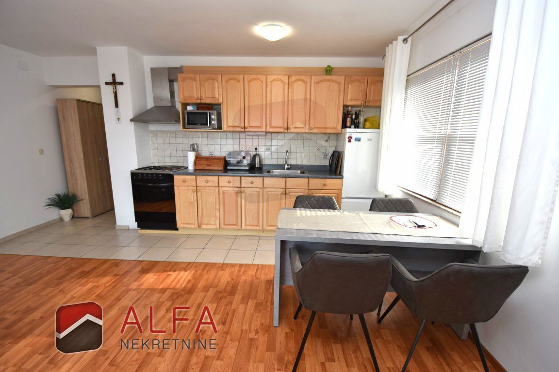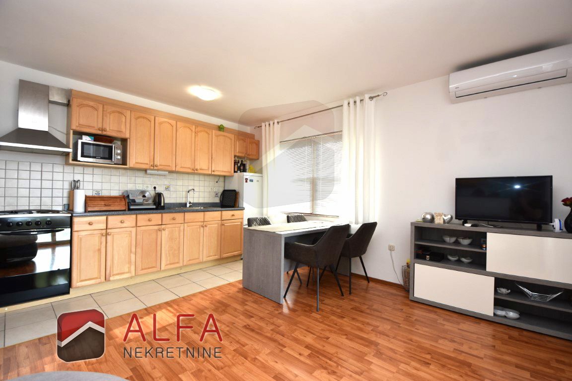 Stan je klimatiziran, potpuno uređen i namješten, te je kompletan namještaj uključen u cijenu.