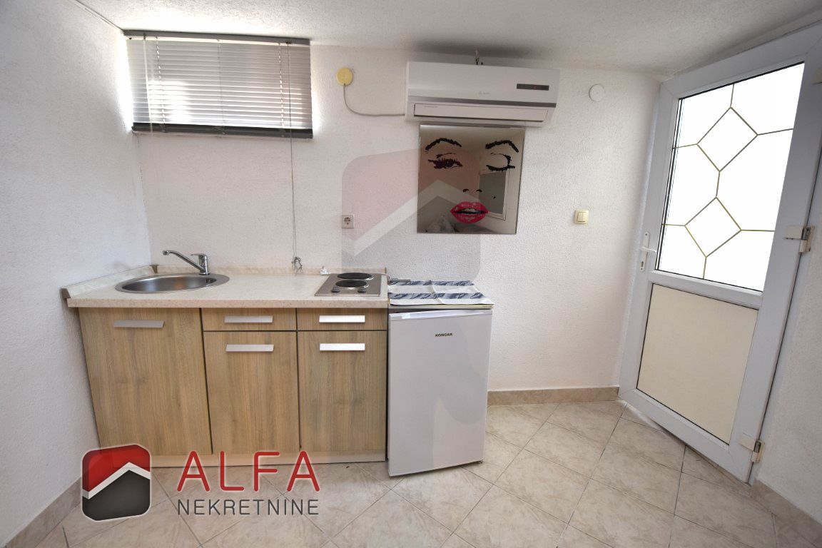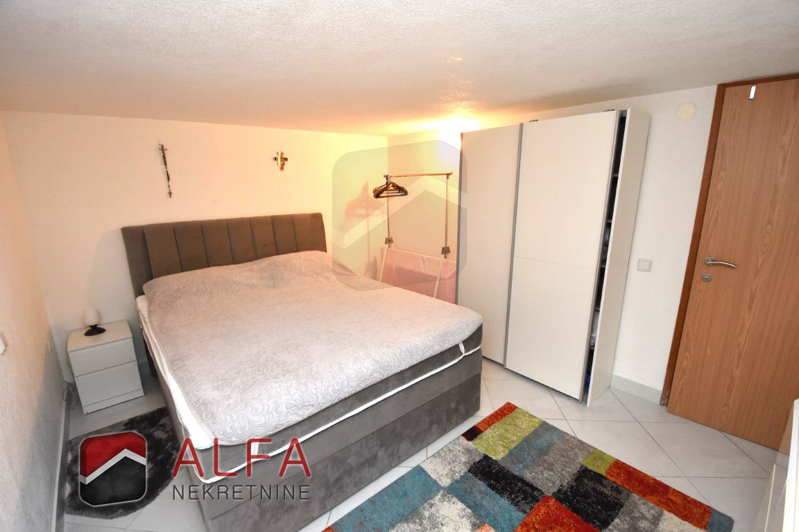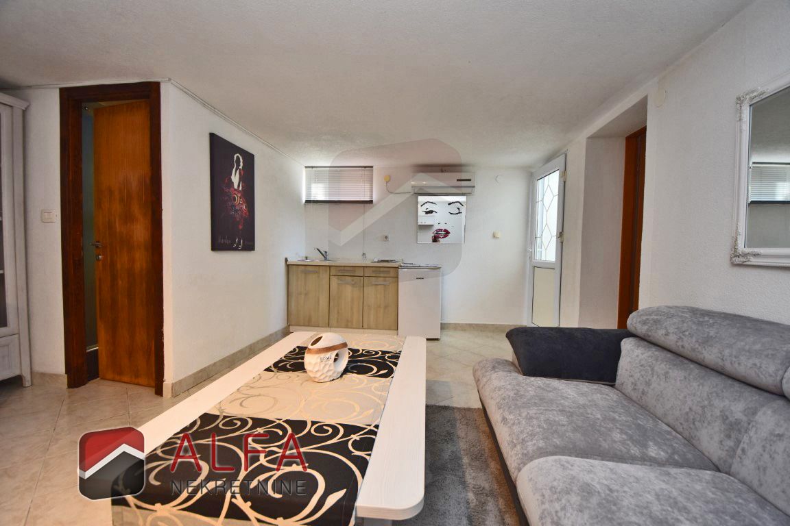 U prizemlju se nalazi stan s manjom ostavom, hodnikom, kupaonicom, jednom spavaćom sobom, te lijepom prostranom terasom sa koje se može sići u podrum i u dvorište. U podrumu je zanimljiv prostor koji je evidentiran kao spremište, ali je preuređen u dodatnu zasebnu stambenu jedinicu sa jednom spavaćom sobom, kupaonicom, dnevnim boravkom i mini kuhinjom, idealno za goste ili najam.