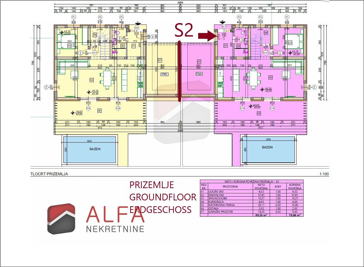 Kuća će biti etažirana kao dvoetažan stan S2, imat će svoju garažu, svoj bazen i svoje dvorište od oko 200 m2.