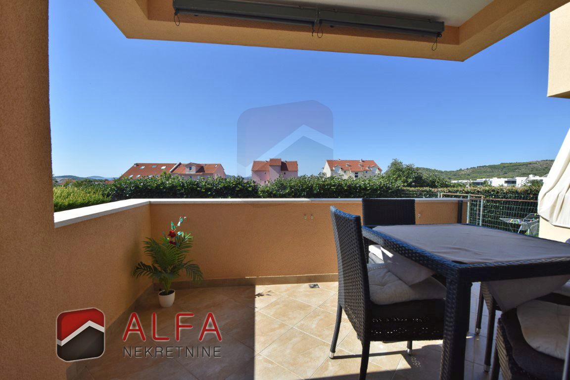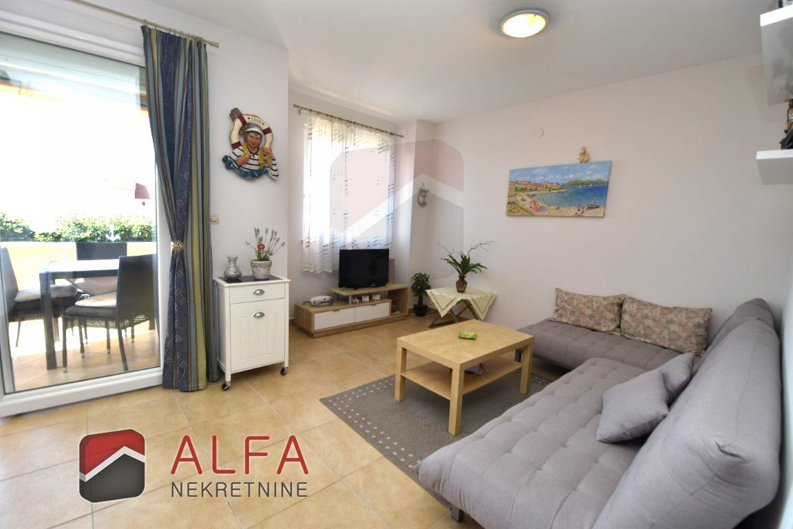 Vodice, na prodaju je stan u prizemlju manje stambene zgrade izgrađene 2006. godine, smještene u mirnom dijelu mjesta, na udaljenosti od 1700 metara od mora.