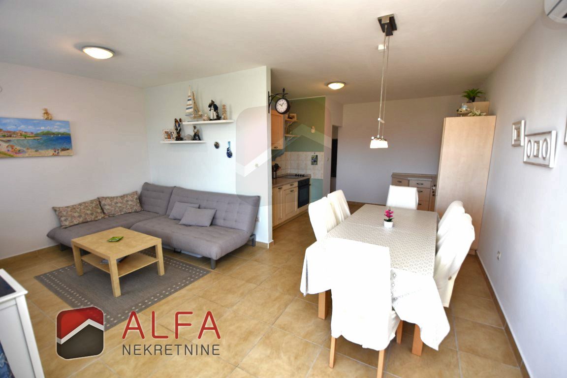 Stan je klimatiziran, potpuno opremljen i prodaje se s cjelokupnim namještajem, što budućem vlasniku omogućava trenutačno useljenje bez dodatnih ulaganja.