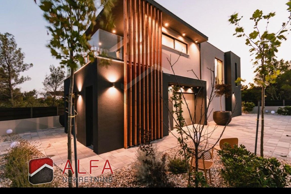 Vodice, Srima, prodaje se nova samostojeća obiteljska vila s bazenom blizu mora. Ova nekretnina moderne arhitekture se nalazi u mirnom okruženju, na izvrsnoj lokaciji, samo 350 metara od mora. Sastoji se od prizemlja i kata.